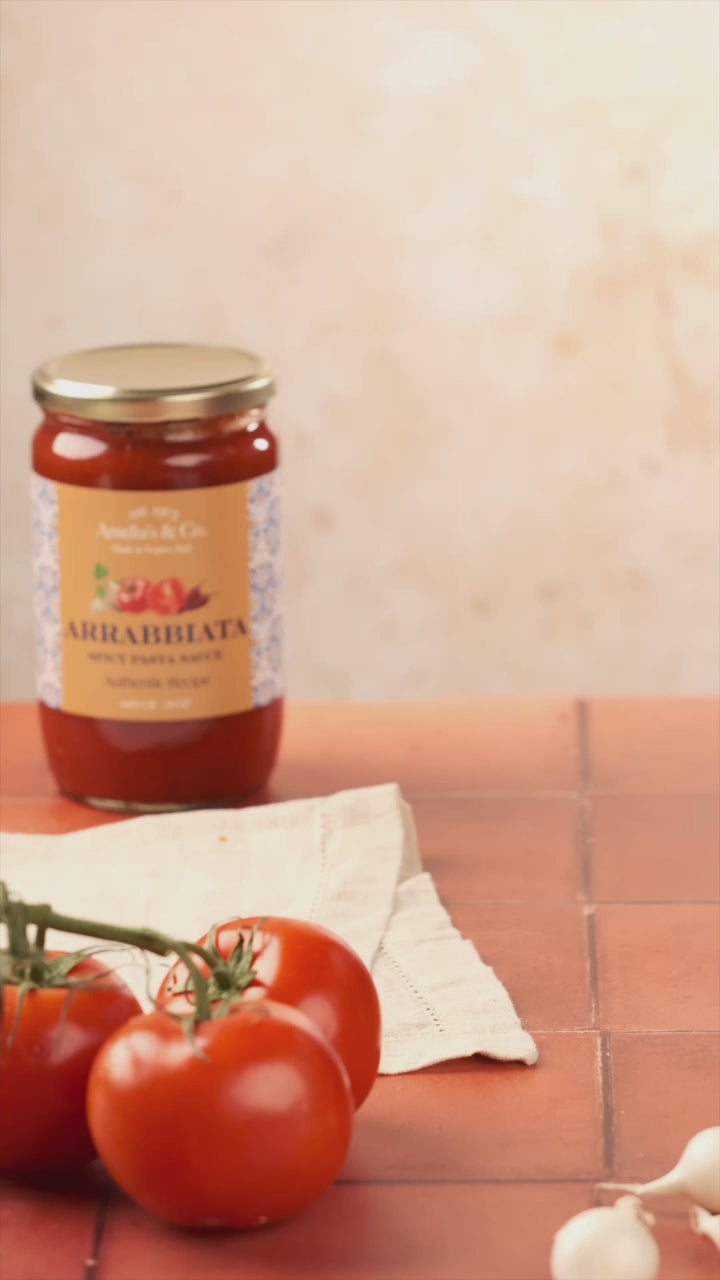 Adding a bit of delicious heat to a savory tomato sauce, our authentic Italian Arrabbiata Spicy Pasta Sauce is a tasty crowd-pleaser. Slow-cooked in small craft batches in Italy this family recipe is made with all-natural ingredients and free of preservatives or artificial flavors. A bit of hot pepper paired with ripe Italian tomato, garlic, and parsley all work together to make a perfect sauce experience.